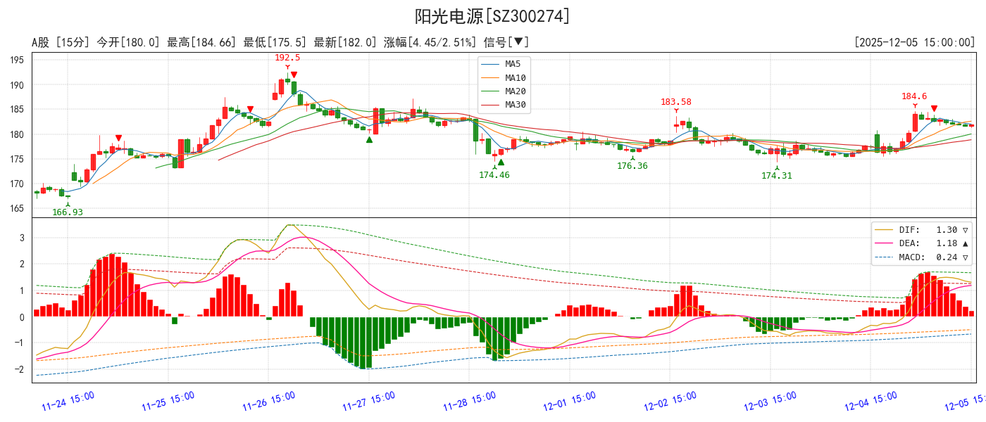 | SZ300274 | 阳光电源 | 182.0 | 2.51% | +4.45 | ▼ | ▲ | ▼ | ▼ | ▲ |