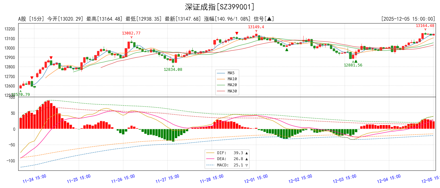 | SZ399001 | 深证成指 | 13147.68 | 1.08% | +140.96 | ▲ | ▲ | ▲ | ▼ | 卖 |