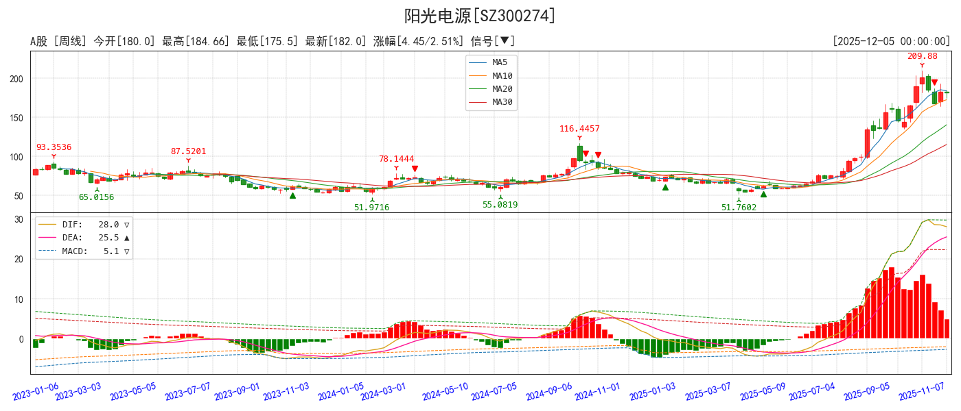 | SZ300274 | 阳光电源 | 182.0 | 2.51% | +4.45 | ▼ | ▲ | ▼ | ▼ | ▲ |